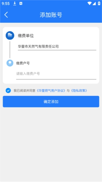 2.输入户号、勾选协议后点击“确定添加”