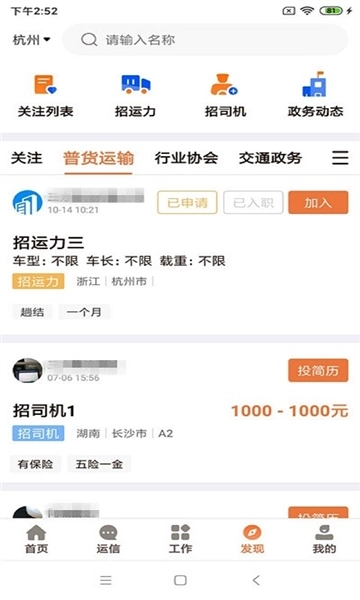 认证司机可以关注并加入更多平台或挂靠企业,以此获取订单和工作机会。
