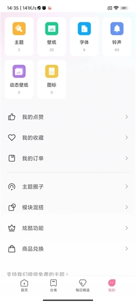 2、来到【我的】界面后,点击左上方的主题按钮