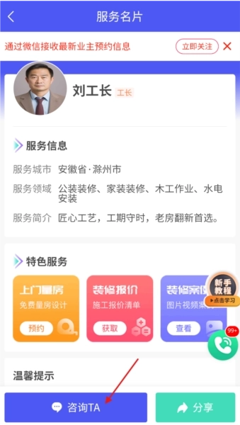 3、如果需要,点击咨询TA即可。