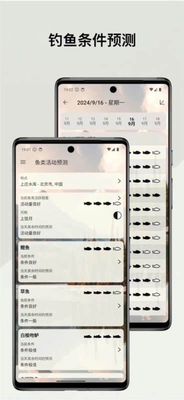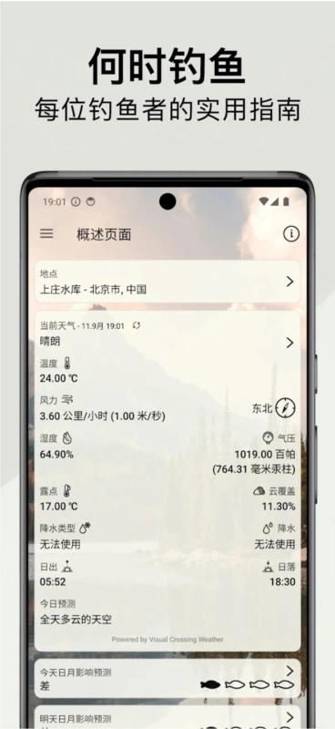 用户能够在日常钓鱼活动开始前,借助“何时钓鱼”功能来查看天气预报以及钓鱼条件的预测信息,从而挑选出最适宜的钓鱼时间与地点。
