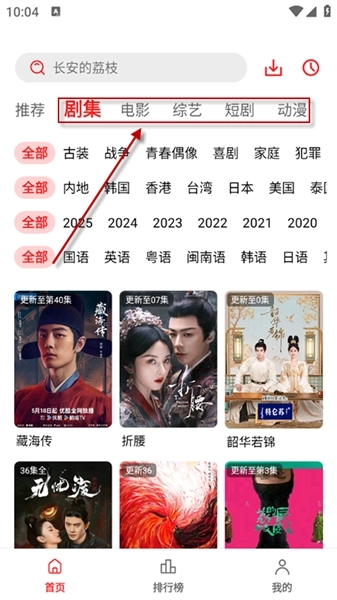 1、在本站内安装并打开软件,通过首页的分类栏目,选择感兴趣的类别进入,如“剧集”“电影”等;