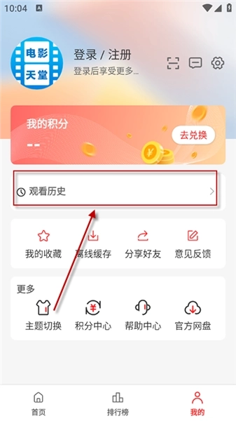 3、查看观看历史,点击“我的”找到“观看历史”选项。