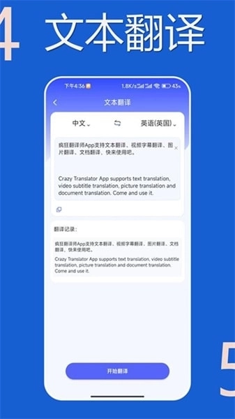多语言支持:疯狂翻译师可支持数十种语言的互译功能,只需一键选择,就能完成精准翻译。