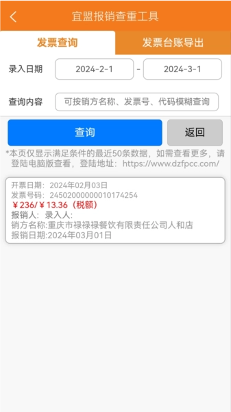 宜盟报销查重工具适配微信小程序与电脑端双平台,数据可自动实时同步,具备扫码查重、同步查验发票真伪及自动归档原件以构建电子发票报销档案库等功能;同时支持搭建企业财务团队,实现团队内电子发票报销数据的共连互通,还能通过一个账号为多个单位创建独立的电子发票报销台账,以及员工自助预填并上传电子发票原件后,会计一键审核并批量归档原件的操作流程。