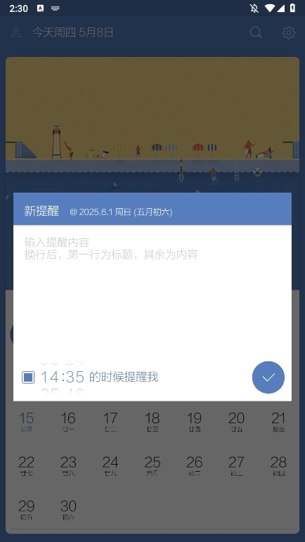 操作便捷:支持上下滑动翻页、左滑查看当月提醒列表等灵活操作,助力提升用户使用效率。