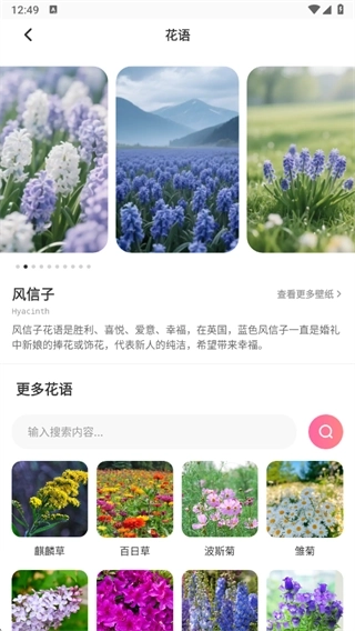 3、点击花语箴言可以查看各种花的话语,直接搜索花的名字就可以查看你想要知道的花的话语。