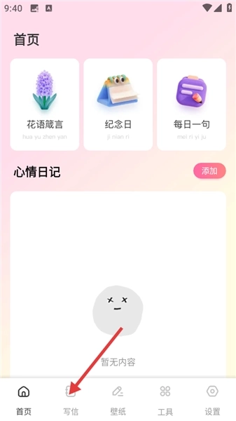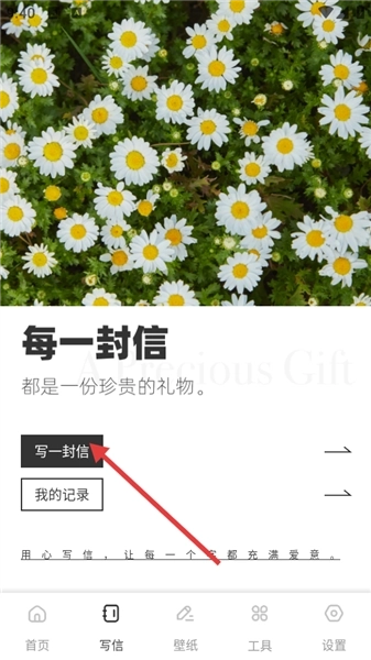 1、在首页中,点击底部【写信】选项,进入写信页面。