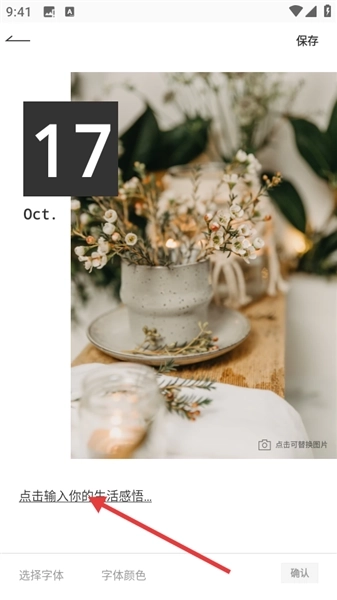 4、在写信编辑页面,点击输入框,输入生活感悟等内容,还可设置字体、字体颜色等,完成后可点击保存。