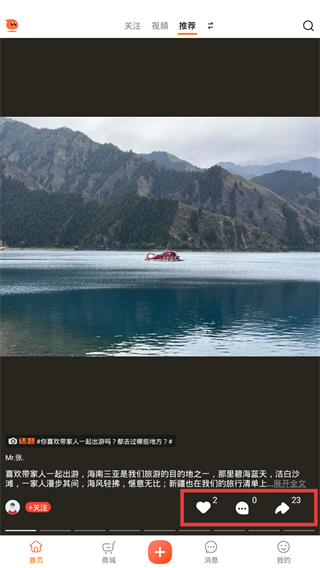 在首页的“推荐”板块中,用户能够浏览内容动态,并且可以借助底部的按钮开展互动操作,比如点赞、评论以及在评论区进行分享。