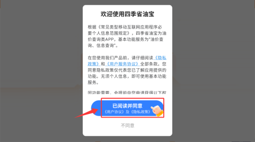 首次打开应用时,请在弹出的使用提示窗口中点击“已阅读并同意”。