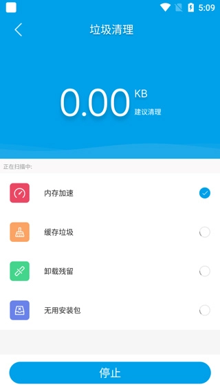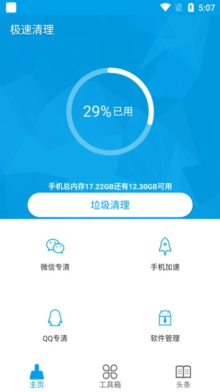 1、在当前页面完成应用安装并打开,进入主界面后选择“垃圾清理”功能,启动内存与残留垃圾的扫描流程