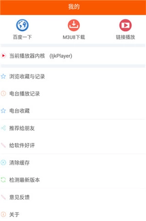 4、进入“我的”页面,能查看全部播放历史记录,支持接续上次观看进度继续播放,此外该页面还具备搜索、M3U8播放、链接播放等功能。