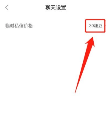 4、选择“临时私信价格设置”,把金额调整到30趣豆,就能开启收费聊天功能了。