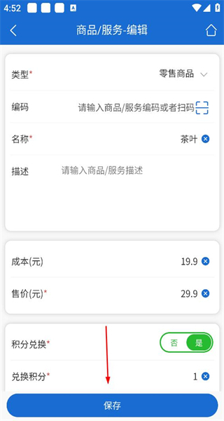4、选取茶叶商品进入其编辑界面,对信息进行调整后,点击底部的保存按钮,即可完成该商品的信息编辑工作。