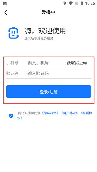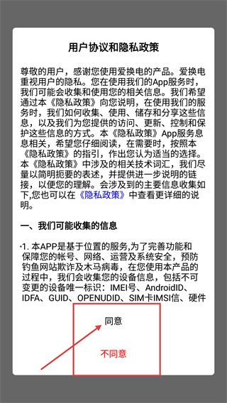 在使用【爱换电】服务前,请务必仔细阅读【用户协议和隐私政策】,在充分了解信息收集相关规则后,点击【同意】按钮即可继续使用服务。