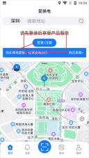 2、在【爱换电】首页,若要使用产品服务,可点击页面上的【登录/注册】按钮,进入账号登录相关操作界面。