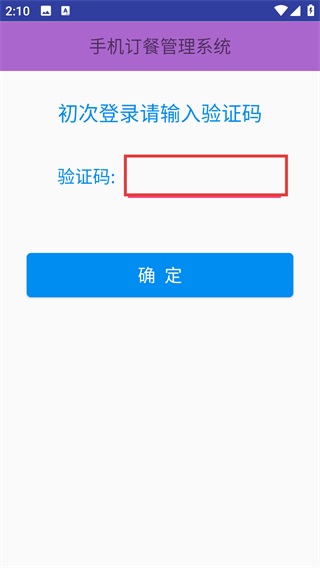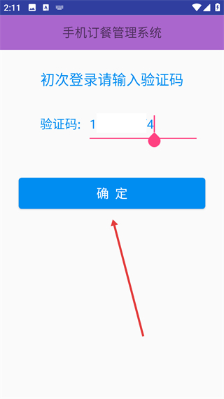 在手机订餐管理系统的首次登录界面,找到验证码输入框。