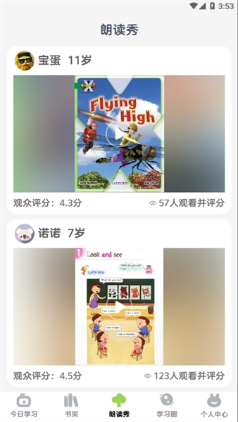 同龄孩子的英语水平存在显著差异,单纯按年龄来划分并不够精准。“今日阅读板块”是我们独家研发的智能算法,它能通过对朗读进行打分、分析错误数据,从而为每个孩子推送适合他们的阅读计划。