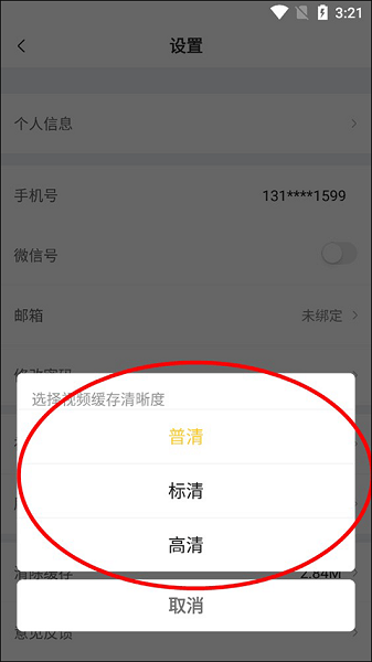 4、此时会弹出一个包含普清、标清、高清等选项的列表,你可根据自身需求选择相应清晰度——画质越清晰,所需内存越大,选定后视频便会呈现你设置的清晰度效果。
