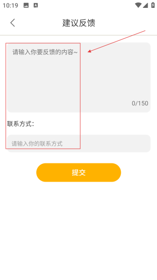 3、进入建议反馈页面后,请【填写反馈内容及联系方式】,为提交反馈信息做好准备。