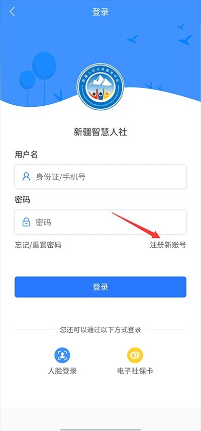 1、随后打开并进入新疆智慧人社,在登录界面点击“注册新账号”按钮
