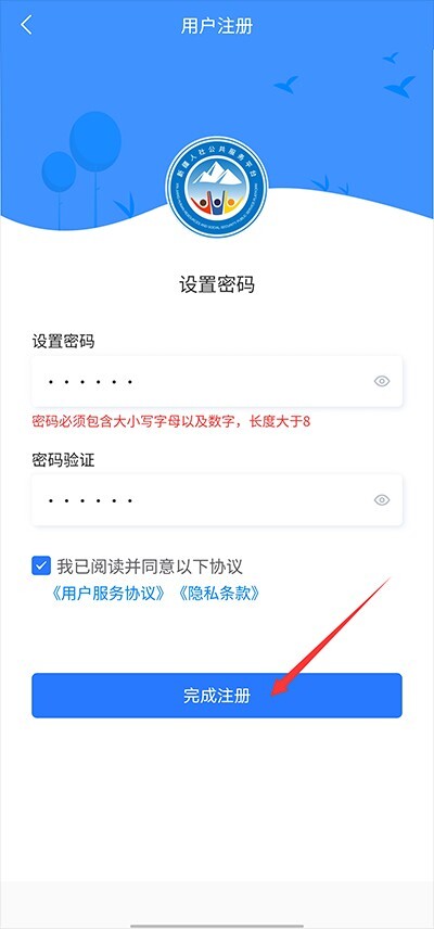 4、最后设置密码后点击完成注册即可