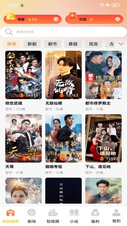 1、短剧推荐板块里收录了不少优质短剧,用户能够根据自己的喜好随意挑选观看;
