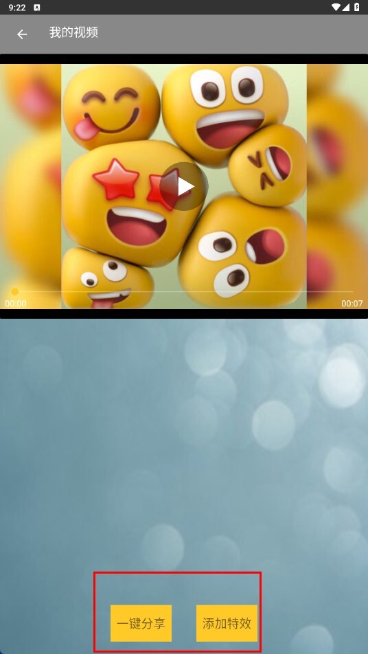 视频制作完成后,可点击【一键分享】按钮直接分享,也能通过【添加特效】中的功能按钮来进行相关操作。