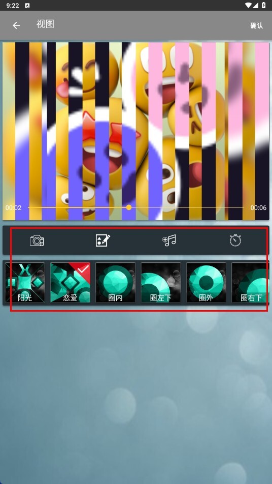进入视图编辑页面后,你可以选择【恋爱-特效】之类的效果,并且能够添加音乐等元素。