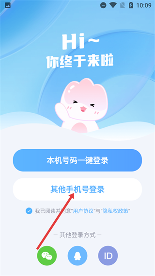 3、进入登录页面后,选择【其他手机号码登录】选项,即可切换为使用非本机号码进行登录的方式。