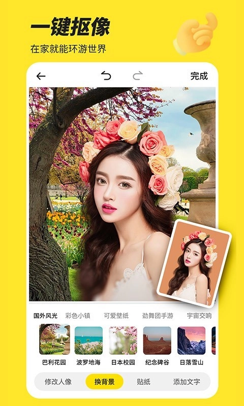 抠人,抠头,换背景,在家就能环游世界。