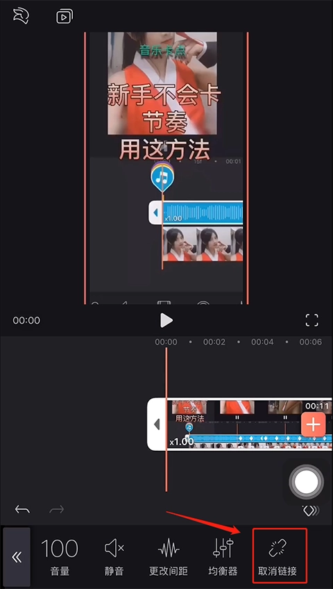 4、选取最末尾的“取消链接”选项,把视频与音频分离开来。
