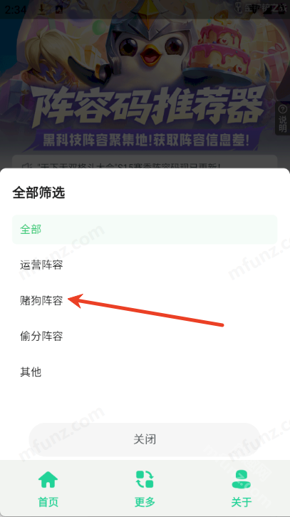 5、点击筛选可根据不同阵容查找阵容码