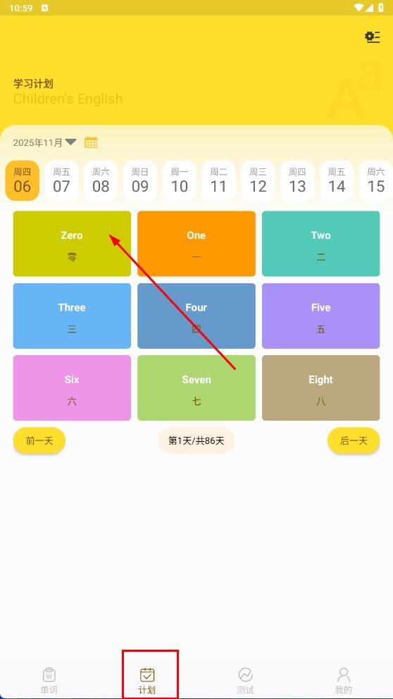 3、点击底部的【计划】功能按钮,进入学习计划页面后,挑选你想要学习的单词内容。