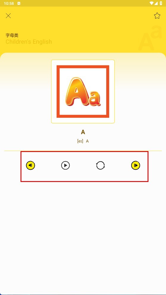 2、在字母学习界面,能查看字母【Aa-字母标识】,还可以借助下方的功能按钮开展学习操作。