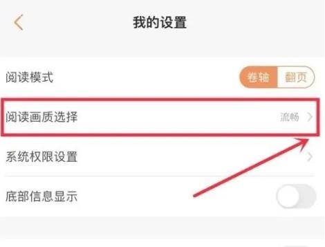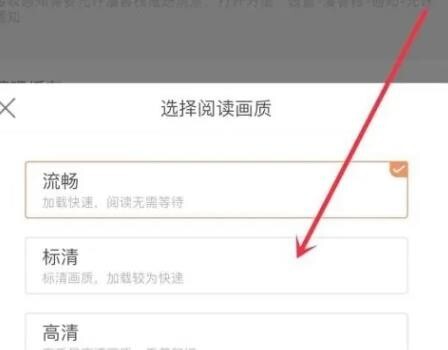 4、点击【阅读画质选择】右侧的箭头图标