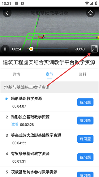 4、在教学资源的播放界面里,点击全屏按钮就能切换到全屏模式,这样可以更清晰地观看实训教学内容。
