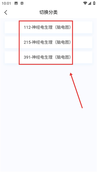 1、进入分类切换界面后,挑选对应的专业分类(例如【112-神经电生理(脑电图)】),以此明确学习或练习的科目方向。