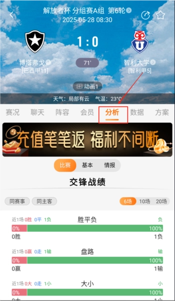 2、在直播界面中切换到战术分析面板,通过左右滑动操作,就能查看实时动态更新的控球率与射门热区交互图表。