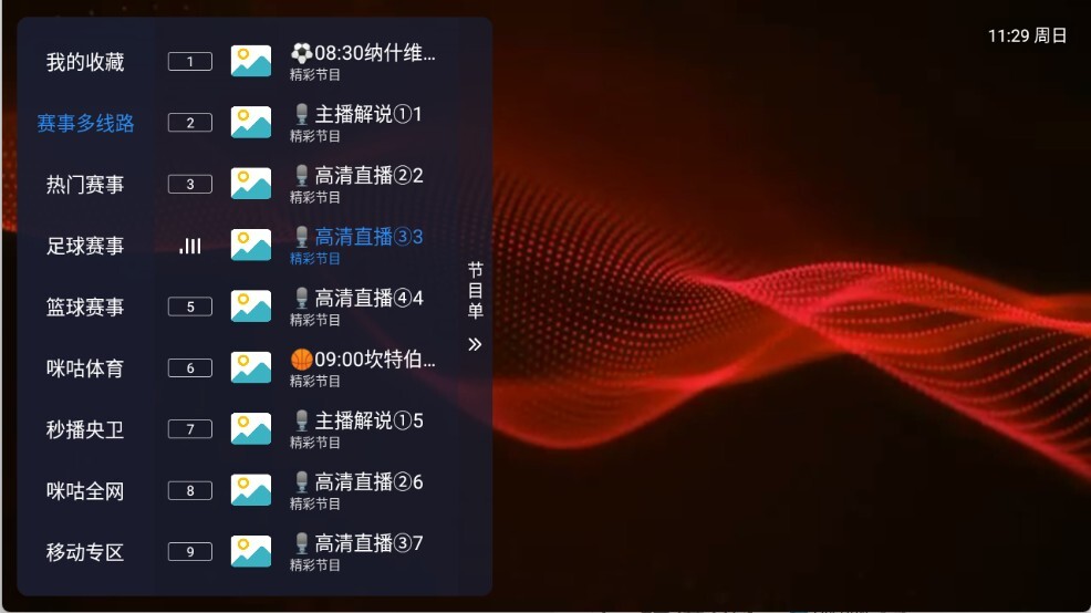 2、高清轮播频道:设有多个高清轮播频道,放送经典电影、电视剧、纪录片等各类内容,用户能够随时欣赏到高品质的节目。