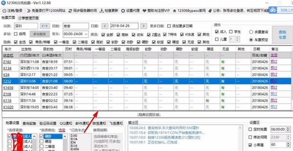 2、配置参数:选定乘车人、席别与车次,建议多选几个选项,这样能提升抢票的成功率。