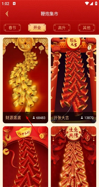 吉祥鞭炮为用户准备了丰富多样的鞭炮效果选项,像传统的大红鞭炮、礼花炮都包含在内,而且每一种鞭炮都具备独特的声音和动画表现。