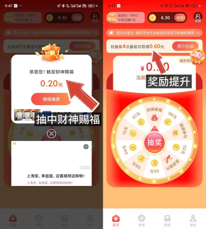 看了提升收益的广告后,有机会抽到财神赐福,这样当前这轮抽奖的最低奖励就会提高。所以建议大家在抽奖时可以多看看这类提升收益的广告。