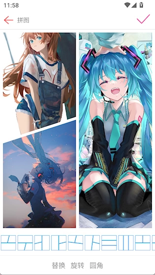 1、长图拼接 可将多张纵向或横向图片按顺序无缝连接成一张长图,适用于聊天记录、网页截图等内容整合,保留原始比例且过渡自然。 2、九宫格布局 提供标准九宫格模板,方便用户一键生成适合朋友圈、微博等平台发布的拼图,提升社交展示效果。 3、自由拼接模式 允许用户自定义图片位置、大小与角度,打破固定框架限制,打造个性化视觉组合。 4、台词拼图功能 专为影视剧截图设计,能将多段台词与画面融合在同一张图中,还原经典场景,增强叙事感。 5、人像抠图工具 精准识别技术,可快速分离人物与背景,便于将人像融入其他拼图场景,拓展创作空间。