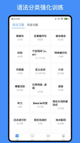 2. 语法练习:包含各类语法要点,借助选择题、填空题等多样形式开展练习,助力用户增强语法运用能力。
