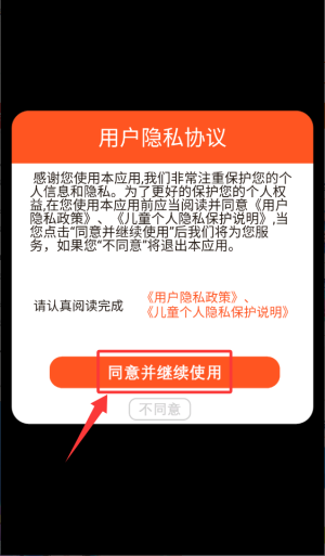 1、首次打开应用时,请在弹出的隐私协议窗口中点击同意,以便继续使用应用。