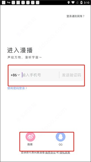 首先需要完成账号登录操作,目前支持手机号、微博、QQ这三种登录途径。