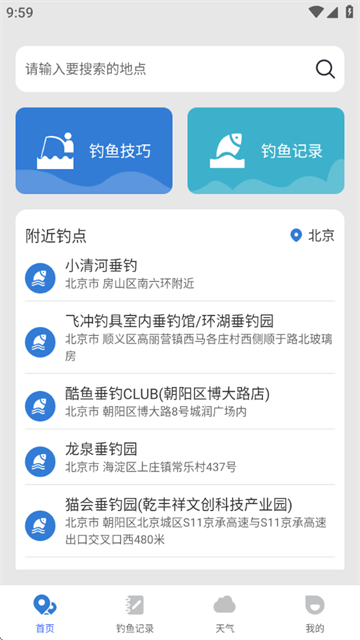 2.周边钓点探寻:借助实时定位功能,一键即可找到附近的热门钓点,助力钓友掌握各钓点的真实状况,以便挑选合适的垂钓地点。而钓点的天气信息,能让你的钓鱼安排更具成效。