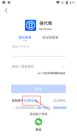 3、进入登录页面后,可选择【密码登录】或【验证码登录】方式;若您还未注册账号,点击【立即注册】即可开启注册流程,此外也支持微信等第三方平台登录。